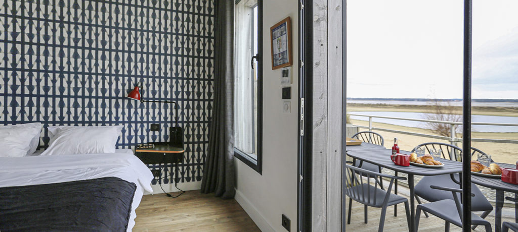 Une chambre aux couleurs de l’estuaire de la Seudre, élégante et intemporelle. Equipée d’un mobilier design d’hier et d’aujourd’hui, elle vous plongera dans une ambiance poétique. Le tout ouvert sur la vue magistrale des eaux de La Plage…